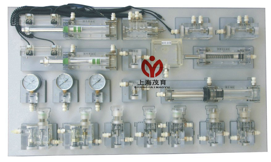 液壓實(shí)驗(yàn)元件均為透明有機(jī)材料制成,透明直觀。便于了解掌握幾十種常用液壓元件的結(jié)構(gòu)、性能及用途。掌握幾十種基本實(shí)驗(yàn)回路的工作過程及原理。實(shí)驗(yàn)時,組裝實(shí)驗(yàn)回路快捷、方便。