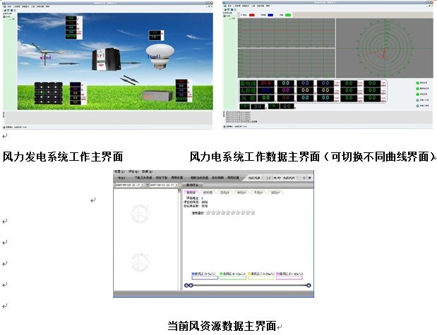 ◆ 顯示內(nèi)容:蓄電池電壓、風(fēng)機(jī)電壓、光伏電壓、風(fēng)機(jī)電流、光伏電流、風(fēng)機(jī)功率、光伏功率,能量模擬圖,當(dāng)前風(fēng)速(米/秒),當(dāng)前風(fēng)向(度),當(dāng)前風(fēng)力資源平估。