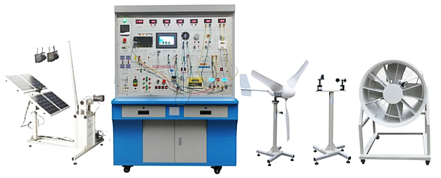 風(fēng)光互補(bǔ)發(fā)電實(shí)驗(yàn)系統(tǒng)-主要由風(fēng)力發(fā)電機(jī)組、太陽能光伏電池組、控制器、蓄電池、逆變器、交流直流負(fù)載、開關(guān)控制模塊、環(huán)境監(jiān)測(cè)模塊、儀表顯示等部分組成,通過PLC控制、觸摸屏和變頻器作為控制核心,帶有A/D、D/A模塊、模擬量輸入/輸出模塊、交流電機(jī)變頻調(diào)速系統(tǒng)。系統(tǒng)于風(fēng)能發(fā)電、光伏發(fā)電為一體的教學(xué)實(shí)訓(xùn)系統(tǒng);各系統(tǒng)通過連接電纜進(jìn)行連接,形成一套可完成風(fēng)力及光伏發(fā)電、同步并網(wǎng)、離網(wǎng)電源的實(shí)驗(yàn)及教學(xué)演示。幫助學(xué)生理解太陽能并網(wǎng)、離網(wǎng)及風(fēng)力發(fā)電系統(tǒng)的原理,從而起到學(xué)習(xí)工程實(shí)際應(yīng)用技能的作用。