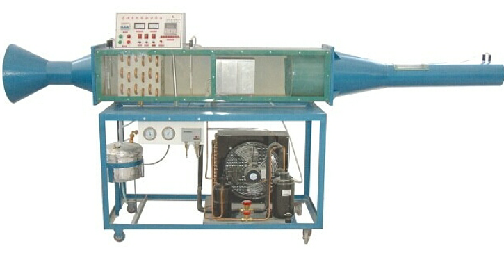 本裝置是采用直流式空氣處理系統(tǒng),并配置壓縮機(jī)、風(fēng)冷冷凝器、蒸發(fā)器、加濕器、電加熱器和風(fēng)管等真實(shí)部件,可測(cè)量壓力、溫度、濕度等過(guò)程參數(shù)。通過(guò)對(duì)本裝置的實(shí)驗(yàn),能使學(xué)生熟悉直流式系統(tǒng)的空氣處理過(guò)程,并得到熱工測(cè)量和計(jì)算的基本訓(xùn)練。本裝置適用于“制冷空調(diào)原理及應(yīng)用”、“制冷空調(diào)技術(shù)”、“建筑電氣控制技術(shù)”等課程的實(shí)驗(yàn)教學(xué)。