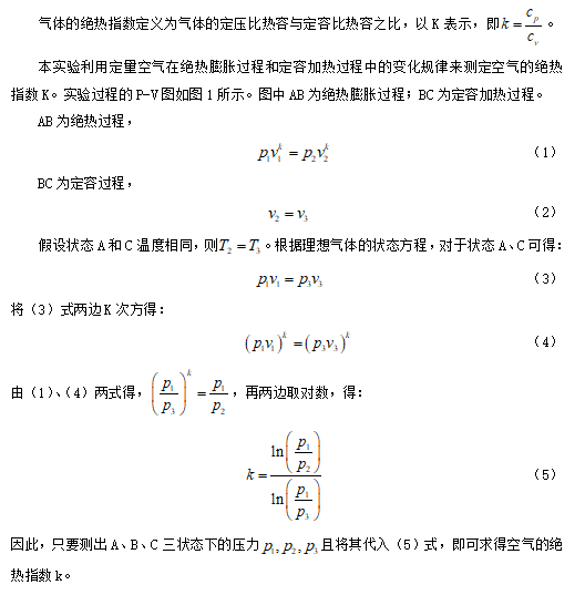 1.通過測量絕熱膨脹和定容加熱過程中空氣的壓力變化,計算空氣絕熱指數。