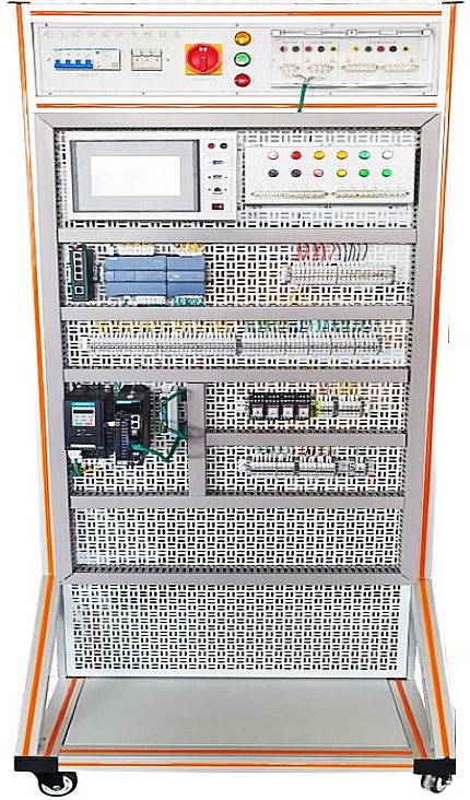 實訓屏底盤鋼鋁結(jié)構(gòu),實訓時放置電機,框架是工業(yè)鋁型材結(jié)構(gòu),萬能網(wǎng)孔板鑲嵌鋁型材中間,配以桔黃色裝飾條,豪華大氣,采用開放式設計,操作空間大,實訓操作方便,裝有4只萬向輪,便于移動。采用雙面結(jié)構(gòu),正面電機控制實訓,背面照明電路實訓。