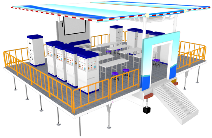 車體展開后實訓平臺的面積可以達到70平方米,可以滿足預定專業(yè)20多人的培訓需求。