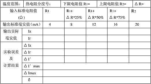 2.逐步增加輸入信號,用標準電阻箱輸入量程R1、R1+ΔR*25%、R1+ΔR*50%、R1+ΔR*75% 、R2的電阻信號值,測出相應輸出電流值Iz,然后再逐步減小輸入信號,測出相應輸出電流值I f。反復做兩次。