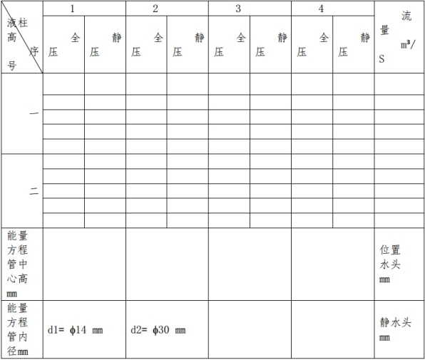 能量方程實(shí)驗(yàn)管工況點(diǎn)實(shí)驗(yàn)數(shù)據(jù)記錄: