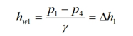 對(duì)1、4兩斷面列能量方程式,可求得閥門的局部水頭損失及2(L1+ L2)長(zhǎng) 度上的沿程水頭損失,以hw1表之,則