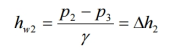 對(duì)2、3兩斷面列能量方程式,可求得閥門的局部水頭損失及(L1+ L2)長(zhǎng) 度上的沿程水頭損失,以hw2表之,則