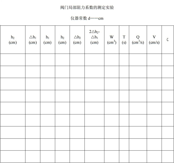 閥門局部阻力系數(shù)的測(cè)定實(shí)驗(yàn)
