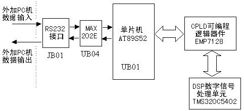 1)程序下載:運(yùn)行信號與系統(tǒng)實(shí)驗(yàn)平臺的上位軟件Signal,選擇“DSP應(yīng)用實(shí)驗(yàn)”,點(diǎn)擊“裝載”按鈕,在彈出的對話框中選擇要裝載的文件(如DSP應(yīng)用程序)或數(shù)據(jù)(如:濾波器設(shè)計),通過RS232串口送入單片機(jī)AT89S52(UB04),UB04通過DSP的HPI 接口將PC機(jī)送來的程序或數(shù)據(jù)發(fā)給DSP,PC機(jī)發(fā)運(yùn)行命令給單片機(jī)UB04,UB04使DSP復(fù)位,并運(yùn)行裝載的程序。